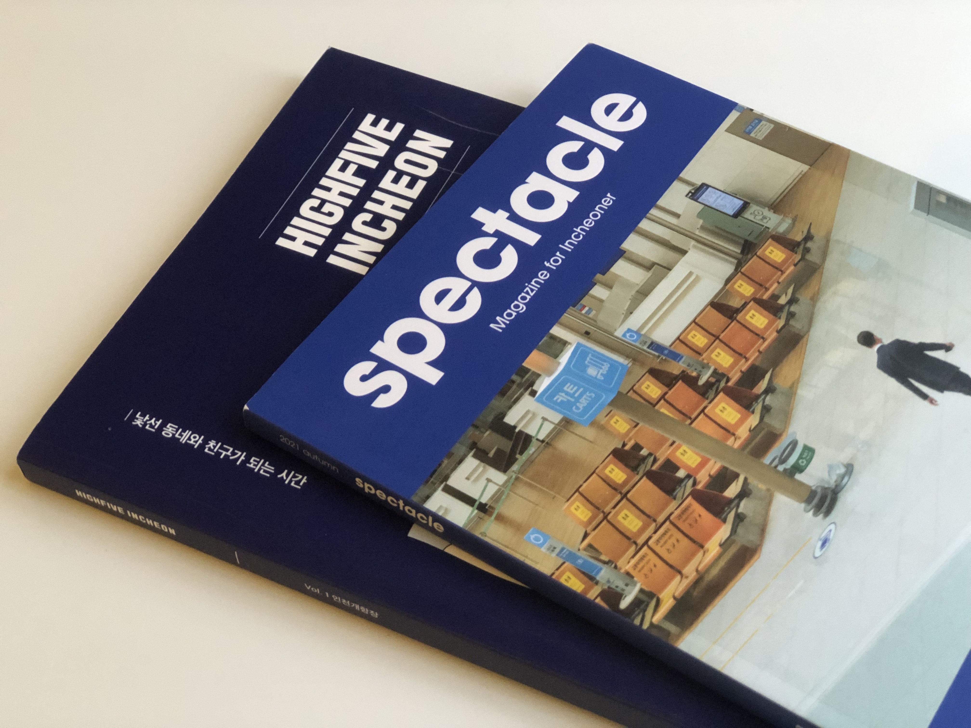 우리의 보행을 잠시 멈춰야만 했던 2020년과 2021년, 비슷한 방법으로 멈춘 도시에 다시금 숨을 불어넣기 위한 두 번의 시도가 이루어졌다. 인천 원도심/개항장의 매력을 알리기 위해 모인 청년 창작자 집단 ‘인더로컬(In/仁 the Local)’은 『하이파이브 인천: 개항장편』을 통해 낯선 사이에서 서로 인사를 주고받으며 가까워지는 과정에 빗대어 도시와 개인의 관계를 그려냈다. 인천의 로컬을 소재로 문화를 기획하는 ‘스펙타클 워크(Spectacle Work)’에서 발행한 인천 로컬 매거진 『spectacle』 창간호는 사람들의 발걸음이 뜸해진 인천국제공항의 모습에서 아이디어를 얻어 인천에 살아가는 여행 같은 일상을 전개한다.