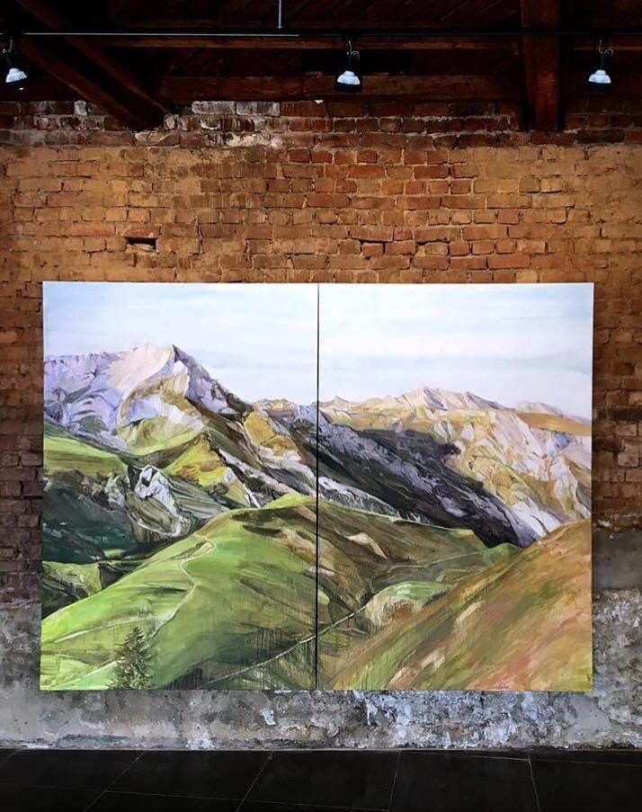 작가가 차분한 숨으로 마주했던 그 풍경과 아름다운 무언가의 감정을 상상하며 삐걱거리는 계단을 잠잠한 호흡으로 올랐다. 이 층의 전시장에 펼쳐진 산의 풍경은 처연하면서 단단해 보였다. '보이는 것', '그 너머의 어떤 것' 들을 지속적으로 바라보기 위해서 작가는 자신의 내면에 더욱 집중하고 다독여갔던 그녀의 시간들 때문인지도 모르겠다. 그녀는 산과 들판, 구름, 까마귀와 같은 자연물을 사랑과 고독, 위대함, 위로 등에 빗댄 이야기의 화자이자 주인공이 된다. 산을 바라보며 다독였던 수많은 감정들의 선을 절단하고 정리하고 새로운 선을, 면을 수 없는 질문들의 시간들로 캔버스 위에 그려낸 더욱 깊고 넓은 내면의 이야기들이 그녀만의 시각적 언어를 지닌 그림이자 글이 되어 우리에게 펼쳐진다.