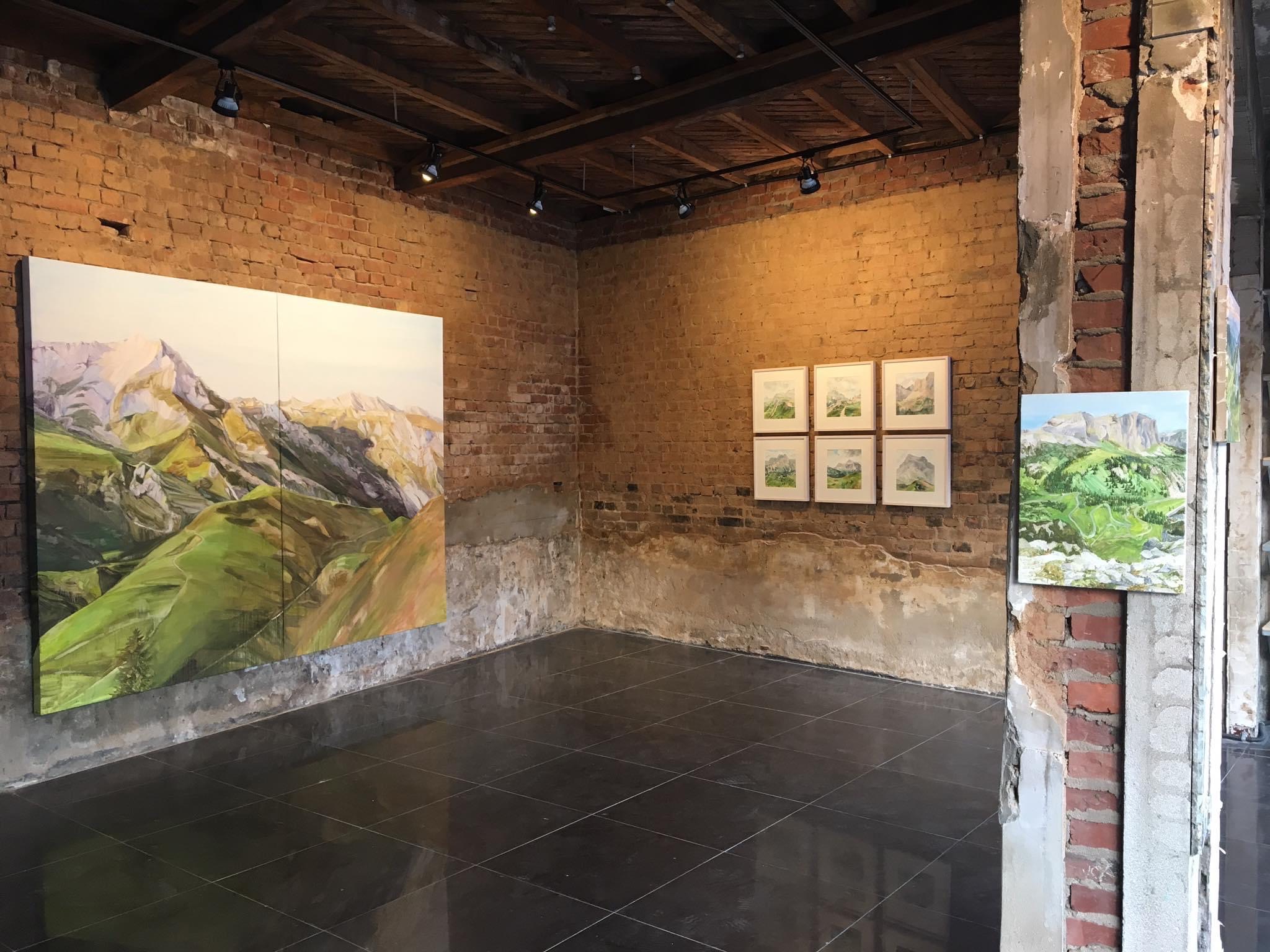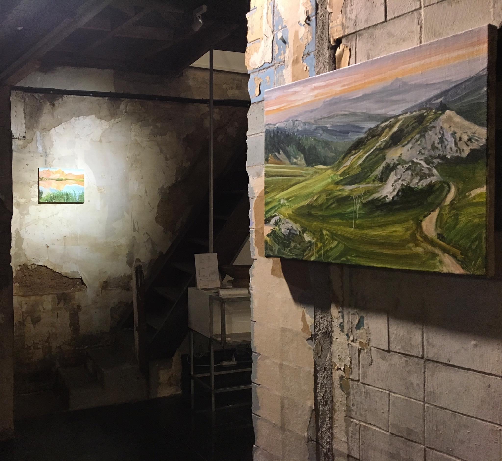 작가가 차분한 숨으로 마주했던 그 풍경과 아름다운 무언가의 감정을 상상하며 삐걱거리는 계단을 잠잠한 호흡으로 올랐다. 이 층의 전시장에 펼쳐진 산의 풍경은 처연하면서 단단해 보였다. '보이는 것', '그 너머의 어떤 것' 들을 지속적으로 바라보기 위해서 작가는 자신의 내면에 더욱 집중하고 다독여갔던 그녀의 시간들 때문인지도 모르겠다. 그녀는 산과 들판, 구름, 까마귀와 같은 자연물을 사랑과 고독, 위대함, 위로 등에 빗댄 이야기의 화자이자 주인공이 된다. 산을 바라보며 다독였던 수많은 감정들의 선을 절단하고 정리하고 새로운 선을, 면을 수 없는 질문들의 시간들로 캔버스 위에 그려낸 더욱 깊고 넓은 내면의 이야기들이 그녀만의 시각적 언어를 지닌 그림이자 글이 되어 우리에게 펼쳐진다.