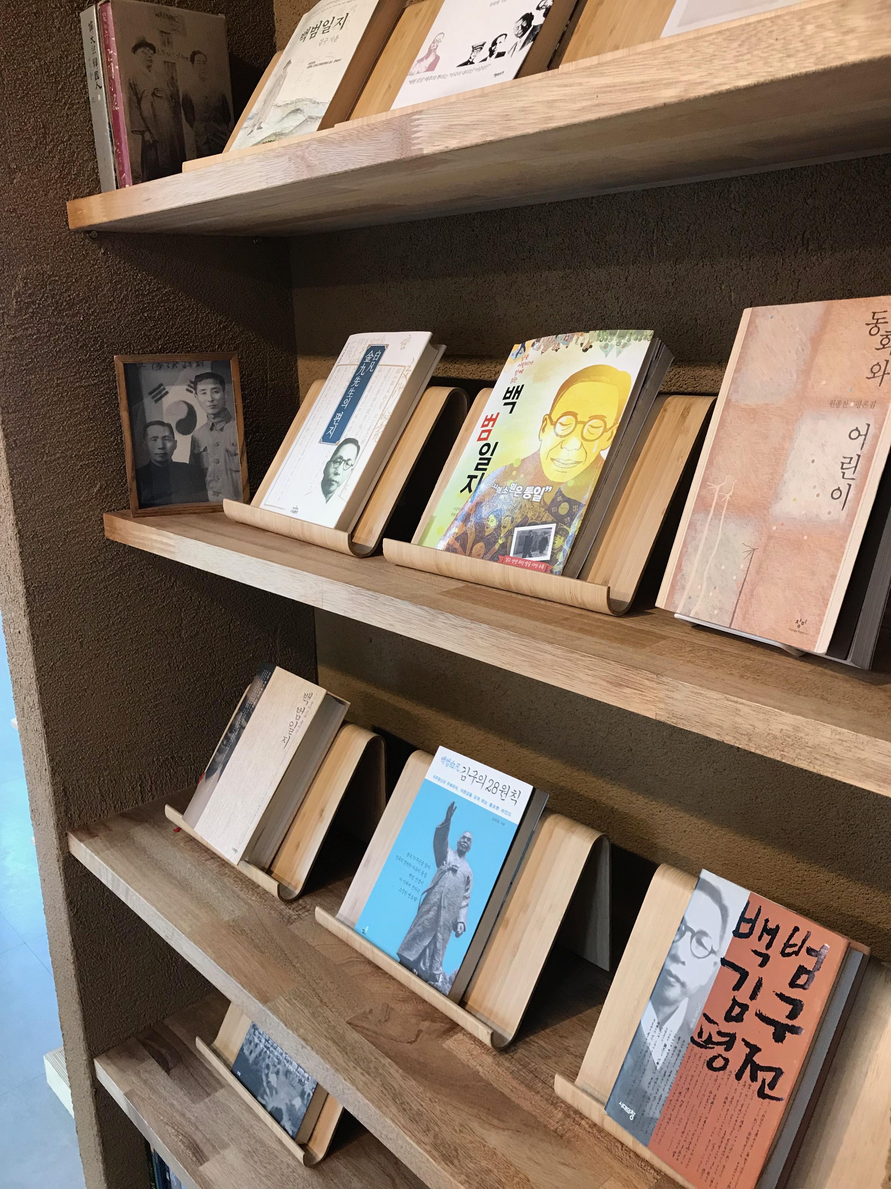 올해에는 3·1운동과 임시정부 100주년을 기념해 임시정부의 지도자 백범을 소재로 출간된 도서를 소개하는 전시 <김구를 만나는 다섯가지 방법>을 기획해 3월 1일부터 4월 11일까지 열었었다. 특히 백범 김구 도서전은 백범과 관련한 서적 120여권을 5가지 주제로 분류했는데, 백범이 자신의 생애를 직접 기록한 백범일지의 시대별, 출판사별 다양한 버전을 만날 수 있는 코너와 어린이와 청소년들이 백범을 쉽게 접할 수 있는 만화 백범일지와 위인전 코너도 마련했다. 평전과 연구서, 일대기를 서술한 책들과 백범을 주제로 한 문학 작품, 애니메이션을 망라해 준비했는데, 백범 관련 서적을 총망라한 전시는 처음이라는 점에서 의미가 컸다.