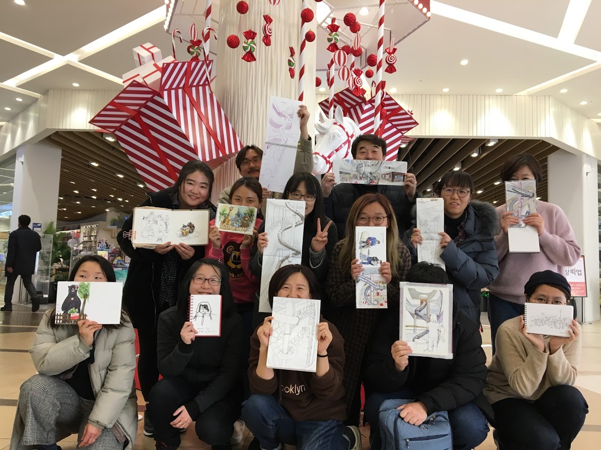 그림 그리는 친구들 중에는 나처럼 매일 그리지는 않지만 일상의 풍경을 직접 보고 그리는 ‘어반스케쳐(Urban Sketchers)’들이 있었다. 어반 스케쳐들은 세계 각 도시에서 모임을 갖고 함께 그림을 그렸다. 한국에도 서울, 수원에 모임이 있기에 특별한 고민 없이 어반스케쳐스 인천 모임을 만들고 한 달에 한 번 스케치 정기모임을 가졌다. 벌써 6년이 넘었다. 함께 그리니 그리는 재미는 두 배 세 배로 커진다. 한 달에 한 번 정기모임 외에도 화요일무조건11시드로잉, 금요드로잉 등 요일별 모임이 생겼다. 그만큼 그리고 싶은 이들이 많았던 것이리라.