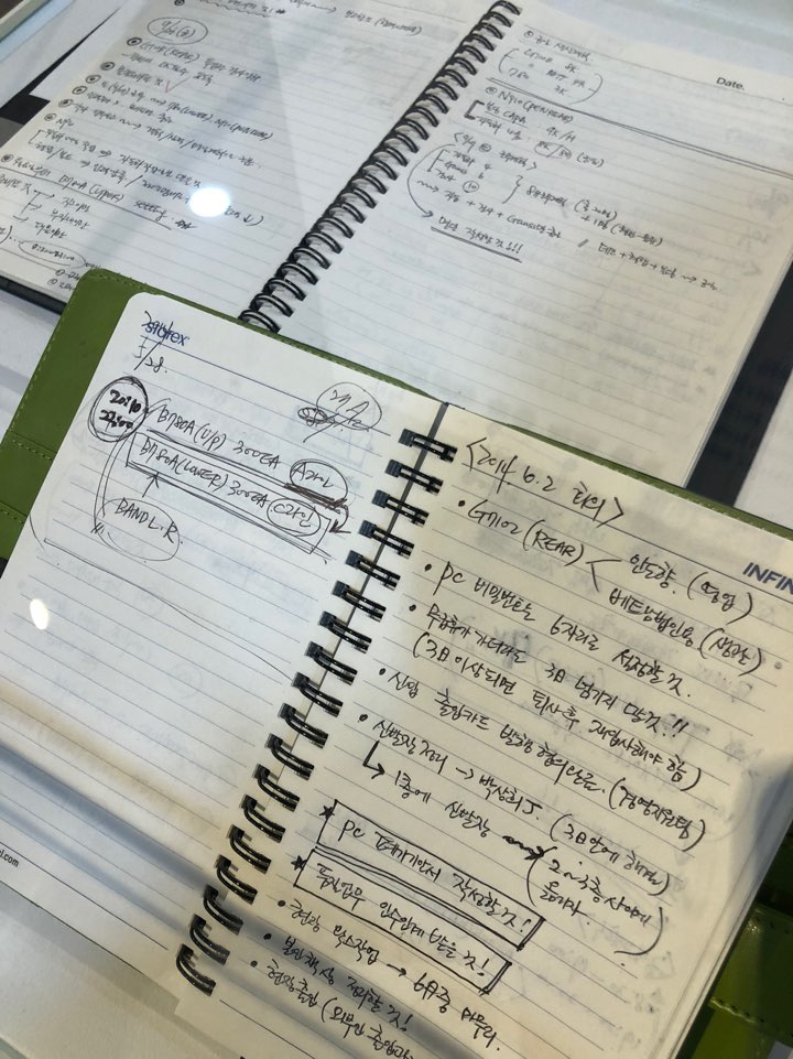 전시 속 많은 인터뷰들 속에서 볼 수 있는 타지의 사람들에게 인천의 의미는 섣불리 규정되지 못한다. 그들은 고향을 떠나 인천에서 평생을 만들어냈지만, 많은 대답 속에서 성취감과 애향심보다는 삶의 고단함을 이야기한다. 지금은 웃으면서 회상하지만 그들에게 공장은 맨몸으로 밀가루를 쪄낸 뜨거운 솥 안을 닦아내는 곳이고, 유리 용광로가 멈추는 손해를 막기 위해 밤을 새는 곳이다. 또 공장은 돈을 벌기 위해 미뤄둔 배움의 꿈이 노동쟁의를 우려한 회사에 의해 저지당하는 곳이고, 삶에 쫓겨 결혼식조차 올리지 못한 이들이 합동결혼식을 올리는 곳이다. 2014년에도 여전히 인천의 노동자들은 ‘3일의 휴가는 무급으로도 용납되지 않는속에서 살고 있다. 노동시간 감축과 최저임금 인상, 때로는 귀족노조와 같은 담론이 오가지만 공장과 노동의 현실은 여전히 더 정교하게 분업화 되고, 더 작게 시간 단위를 쪼개어 효율성의 가장 끝을 향해 달려가는 블러디 테일러리즘을 벗어나지 못한다. 최대한의 이윤을 위해 계산된 최소한의 고용으로 인해 공장의 기계와 한 몸과 같은 노동자는 마치 기계의 부품이 빠지면 안되는 것처럼 사라져선 안되는 것이다. 그러나 이런 삶은 이 전시에서 구체적으로 설명되거나 조명 받지 못한다. 다만 펴져 있는 수첩의 한 줄, 인터뷰의 한 마디들을 신경 써서 모아야만 한다.