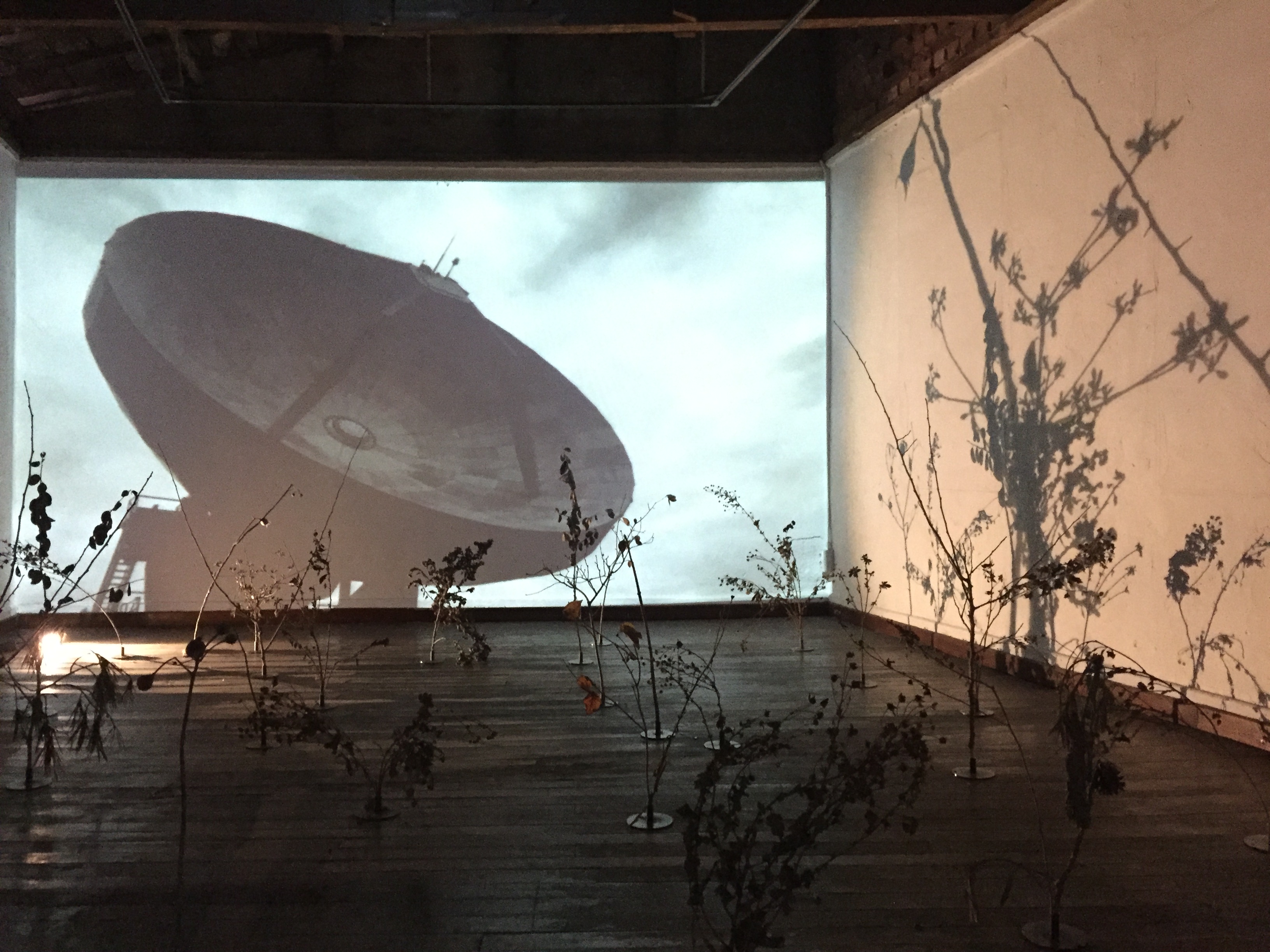 영상에서는 누구나 한번쯤 보았을 법한 보통의 섬 풍경이 등장하는 가운데, 호기심을 일으키는 독특한 형태의 구조물이 등장한다. 안테나 형태를 한 이 구조물은 제주에 위치한 전파망원경이라고 한다. 전파망원경은 우리가 보통 아는 가시광선 영역을 이용하는 광학 망원경과는 달리 전파 영역을 이용하여 관측하는 망원경이다. 우주 공간의 천체로부터 방출되는 전파를 수신하는 장치로, 세계 여러 곳에 위치한 여러 개의 전파망원경을 연결하여 블랙홀을 관측했다고 한다. 머나먼 우주에 있는 대상을 알려고 하는 이 장치를 통해 작가는 섬이라는 고립된 장소의 단절된 공간성, 연결과 확장을 드러내고자 하였다.