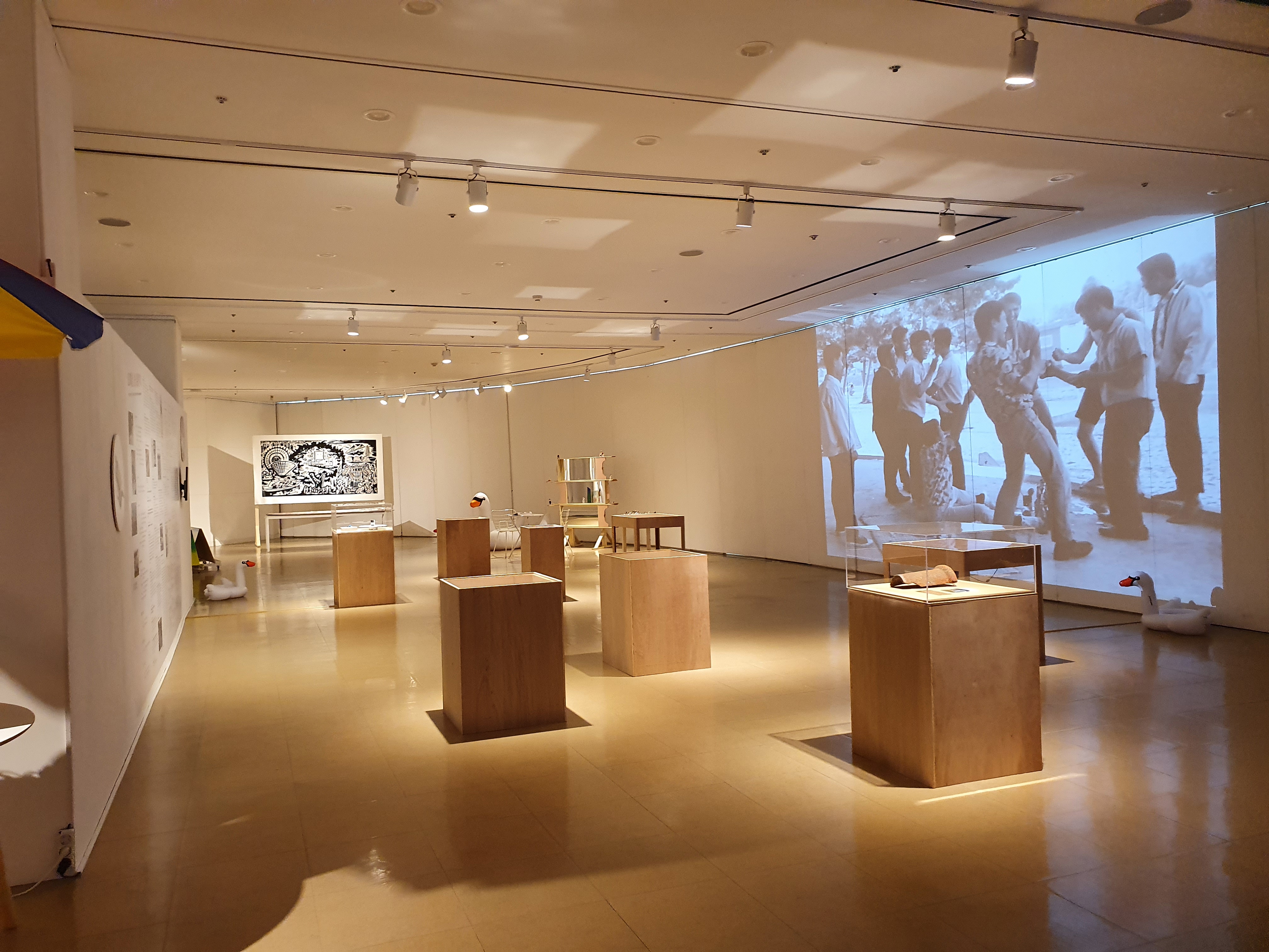 전시장 중앙 홀은 송도 유원지의 아카이브를 위한 공간이다. 인천 시민들이 소장하던 개개인의 추억들이 사진과 영상을 비롯해 송도 유원지와 관련된 각종 서적 및 자료들, 송도 유원지에서 나온 각종 유물들이 전시되어 있다. 넓은 벽면에 시민들이 보내 준 송도 유원지의 사진들이 지나가고 있는데, 넋 놓고 보고 있을 만큼 재밌다. 어쩌면 이렇게 시대도 다양하고 스타일도 제각각에 표정들이 생생하고 행복한지...요즘 유행하는 관찰 예능 마냥 보고 있는 나도 같이 즐겁다. 맞은편 가벽에는 송도 유원지의 연혁에 대해 정리해 두고 관련된 주요 기사들을 실어 놓았다. 작은 모니터에는 송도유원지에서 놀고 있는 어느 집 홈 비디오가 재생되고 있다.
