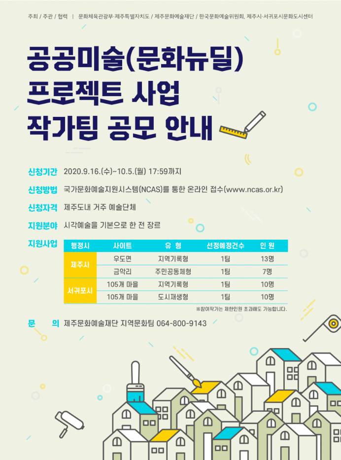 이처럼 제주에서는 '우리동네 미술' 사업을 통해 공공장소나 특정 건물에 벽화나 조형물을 설치하고 사람들의 감상을 유도한 것이 아니라, 지역을 조사하고 마을 주민과 관계를 맺는 것에서 작품 제작과 전시가 시작되었다는 점에서 본 사업이 추구하는 지역과 예술가의 소통과 협력에 대한 목적을 일단은 달성했다고 본다. 하지만 여유 없이 진행된 프로젝트의 아카이빙 결과물이 보다 많은 사람들에게 홍보나 공유되지 않은 점은 아쉬움으로 남는다. 한국문화예술위원회에서 운영하는 ‘공공미술포털(www.publicart.or.kr)’이 마련되어 있지만 2020년 진행한 공공미술 프로젝트 ‘우리동네 미술’에 대한 정보는 찾아볼 수 없었다. 웹 또는 모바일을 통해 언제 어디서든 원하는 정보를 찾을 수 있는 시대에 사업의 겉모양만 갖추는 것이 아니라 예산을 투입하여 잘 진행된 사업이 지역 주민에게 어떻게 공유될 것인지에 대한 세심함이 부족해 보인다. 또한 문화도시 사업 및 도시재생 사업을 통해 다양한 지역 아카이빙이 곳곳에서 진행되고 있는 제주의 상황을 감안하면, 공공미술 사업이 타 사업과의 차별화를 위해 작가와 지역 주민의 협업을 어떤 효과적인 방식으로 이루어 낼 것인지와 같은 부분에서 한층 깊은 고민의 시간이 필요하지 않았을까 싶다. [ ]