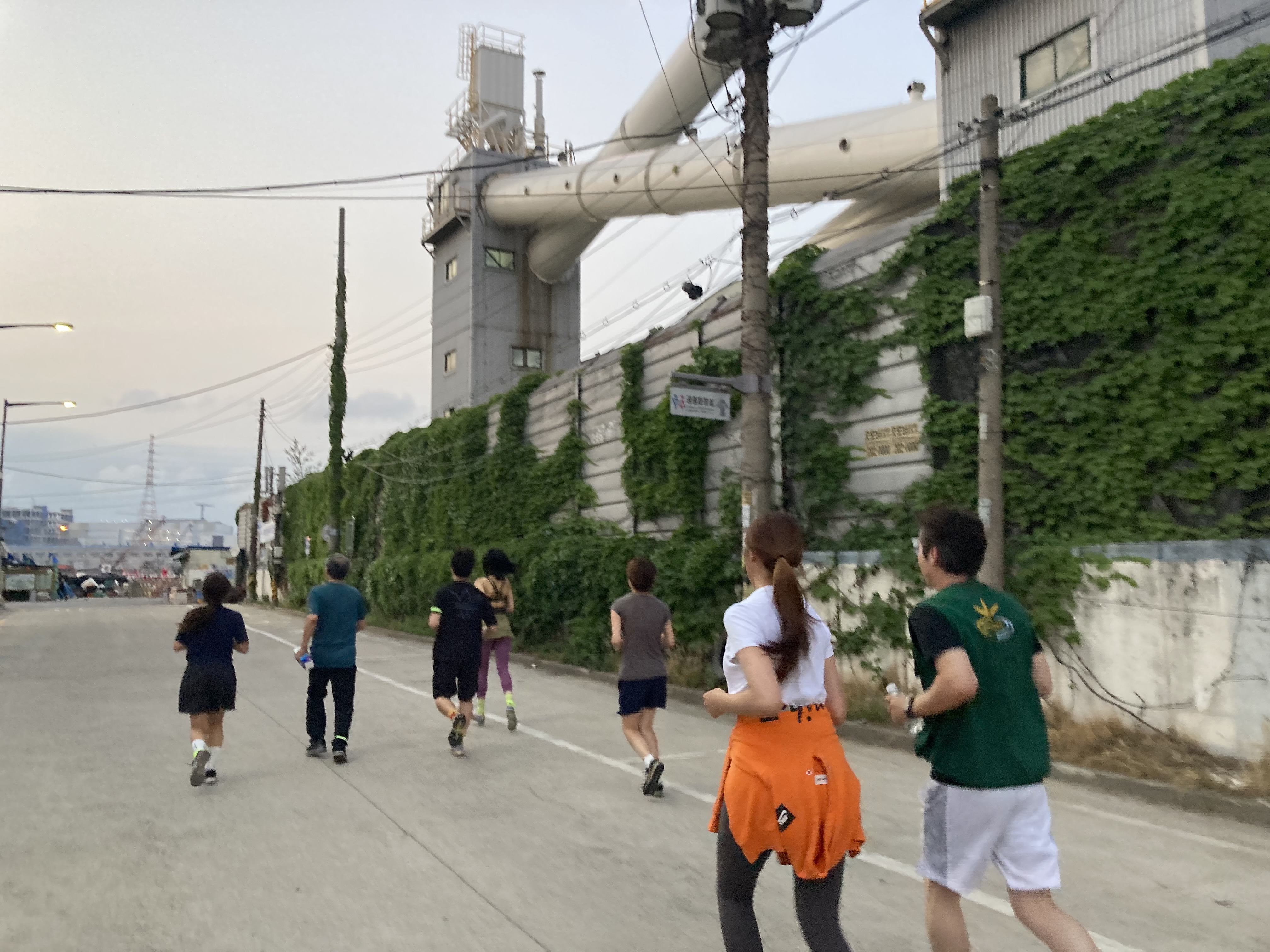 2022년 6월 18일은 열 명 남짓의 사람들과 함께 인천 만석부두의 공장지대를 달린 날이었다. 각종 기계로 가득한 공장들 사이를 마치 기계처럼 뛰기 위하여 참가자들은 대화조차 삼가기로 했다. 이 자리를 기획한 김재민이는 최근 '오근세의 길'(2021), '용산 공장 달리기'(2021)와 같은 작업을 통해 도시 생태계의 사이클 변화를 몸으로 느껴보기를 권해 왔다. 현재는 인천아트플랫폼 레지던시 입주 작가로서 공장달리기 시리즈의 인천편을 연구하고 기획 중이다.