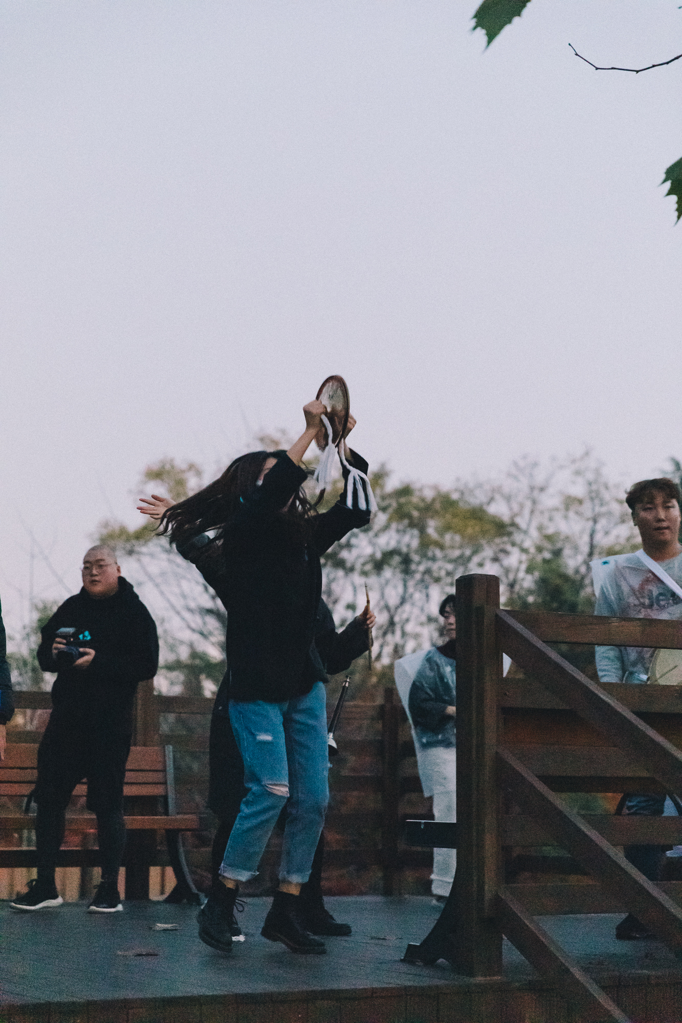 나를 포함하여 2층에서 뒷마당을 지켜보던 사람들은 광대패를 향해 손을 흔들고 몸도 흔들었다. 커다란 창에는 유리가 없었기에, 우리가 있는 풍경은 1층과 2층으로 나뉜 커다란 무대에서 춤추는 극단의 공연 같았다. 풍물패는 2층 사람들을 신경 쓰지 못하는 모양이었지만, 2층의 사람들에게는 멋진 순간이었다. 풍물패가 뒷마당을 돌아 나와 1층 문을 통해 집 안으로 들어오자, 기다리고 있던 사람들은 대열에 합류해 집을 돌아다니며 같이 춤을 추었다.
